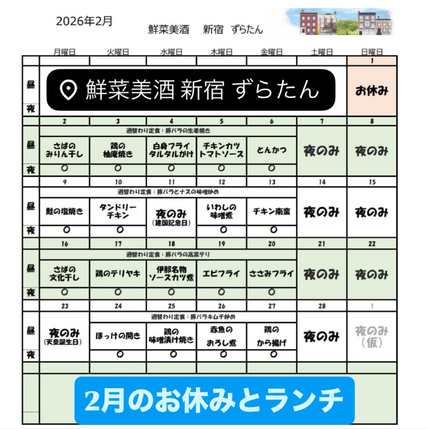 【⛄️2月のランチとおやすみ⛄️】